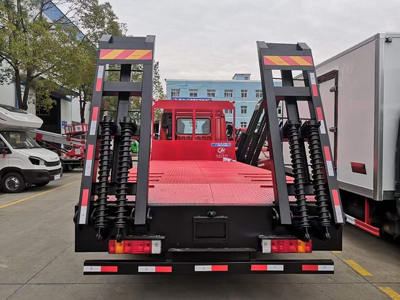 上裝配置:橫梁采用100X100規格方管,貨箱平板采用5mm后花紋板,爬梯采用雙彈簧爬梯,帶有后支腿。(可選裝單節液壓爬梯,雙節液壓爬梯,無爬梯帶斜坡等結構)