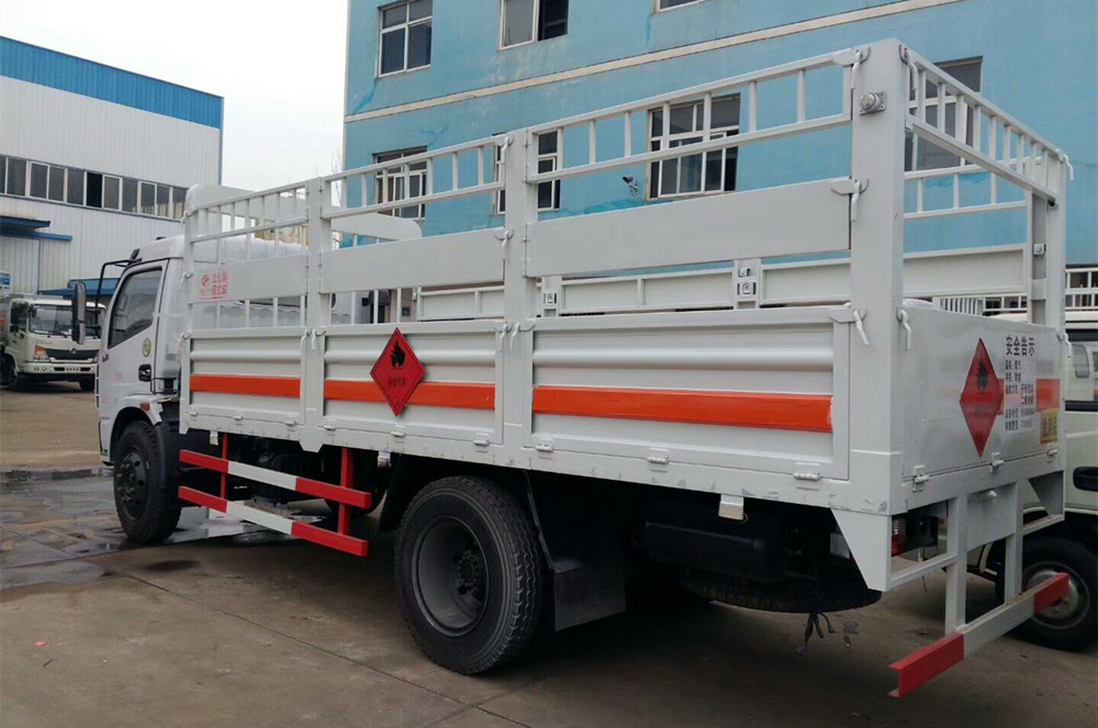 該車適用于運輸危險品。用于運輸具有**容器(瓶)包裝的易燃?xì)怏w(類項號:2.1):液化石油氣,壓縮甲烷或甲烷含量高的壓縮天然氣,乙炔,乙烷,丁烷,丙烯,丁烯,二甲醚,壓縮氧;用于運輸具有**容器(瓶)包裝的非易燃無毒氣體(類項號:2.2):二氧化碳,壓縮氧(氮,空氣,氦,氬,氖)。防護材料:Q23**碳鋼,連接方式:左右側(cè)面及后部防護均采用焊接連接,后部防護斷面尺(mm):**×50, 后部防護離地高度(mm):500。僅采用底盤子午線輪胎和帶ABS的底盤,該車前輪安裝盤式制動器,前置排氣管,裝配限速裝置,限速80km/h。安裝帶有衛(wèi)星定位功能的行駛記錄儀。ABS系統(tǒng)生產(chǎn)廠家及型號:襄陽東風(fēng)隆誠機械有限責(zé)任公司,ABS/ASR-24V-4S/4M。隨底盤選裝前面罩,前保險杠,前組合燈具。上裝可選裝無柵欄。后部液壓尾板收起狀態(tài)的水平長度是250mm。危險貨物運輸車輛的車輛類型(FL型車輛)。 |